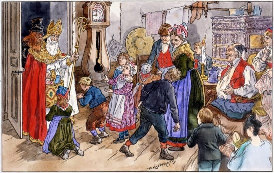 La tradition veut que les enfants préparent leurs souliers devant la porte de leur chambre ainsi qu'un verre de lait pour Saint-Nicolas et quelque chose à manger pour son âne. Dans la nuit, Saint Nicolas passe déposer des pains d'épices à son effigie et des mandarines aux enfants sages pendant que le Père Fouettard surveille les enfants.