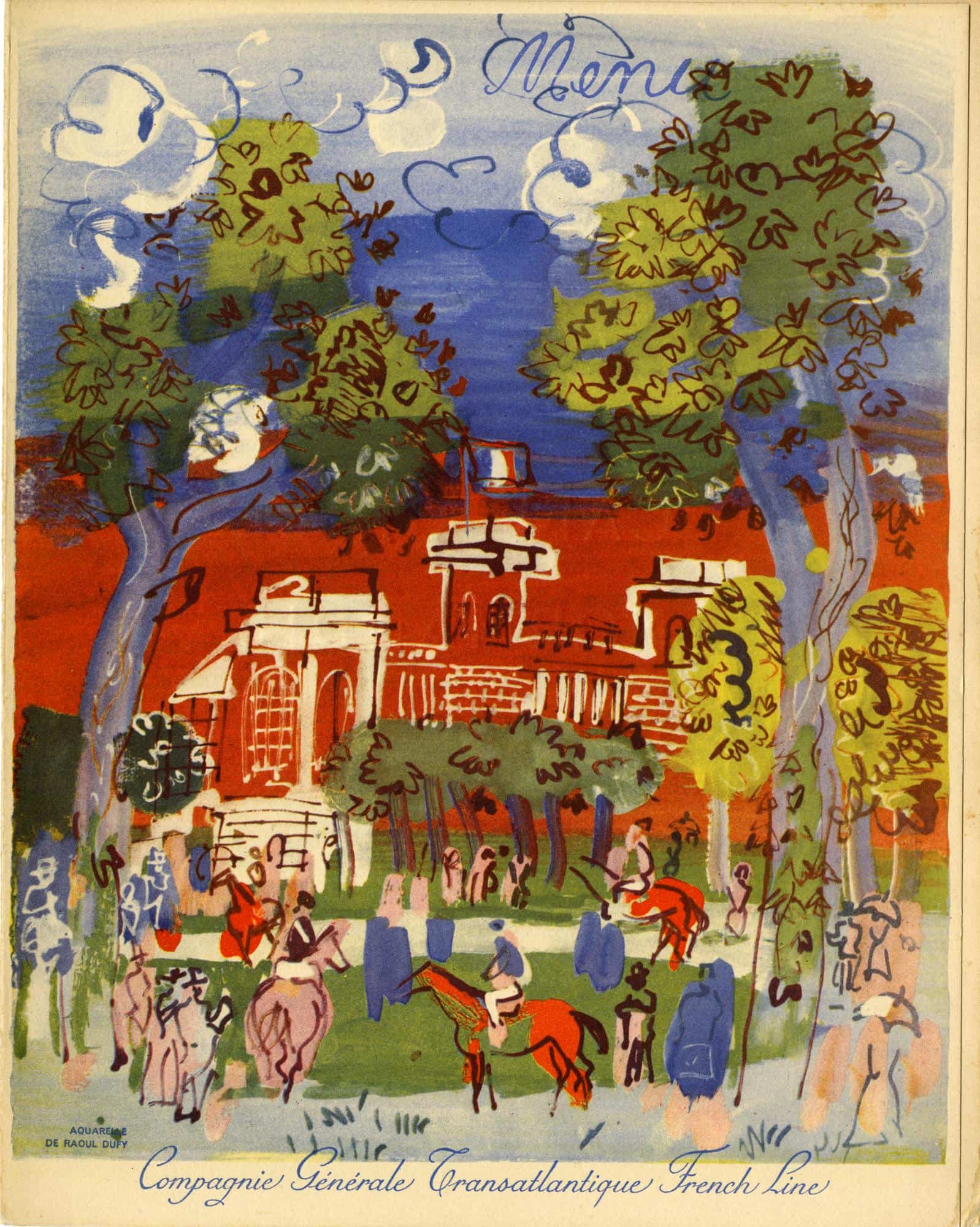 Illustration 1 : Couverture d'un menu de 1ère classe - Archives de Saint-Nazaire | Illustration 2 : Menu de 3ème classe - Archives de Saint-Nazaire | Illustration 3 : Menu de 1ère classe - Archives de Saint-Nazaire|Illustration 4 : Couverture d'un menu de 1ère classe avec un dessin de Raoul Dufy - Archives de Saint-Nazaire