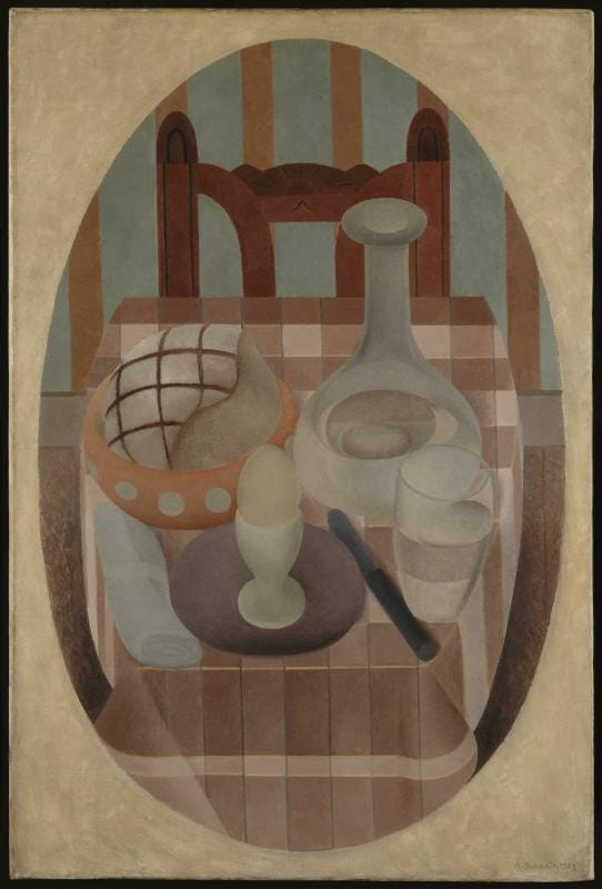 Tableau 1 : André Beaudin - L'Oeuf à la coque (1923)|Tableau 2 : Gilles Chambon - Allégorie chronienne ou l'énigme de l'oeuf à la coque (2020)|Tableau 3 : Amédée Ozenfant - Nature morte puriste - Etude pour ‘Accords' ou ‘Fugues' (1921)